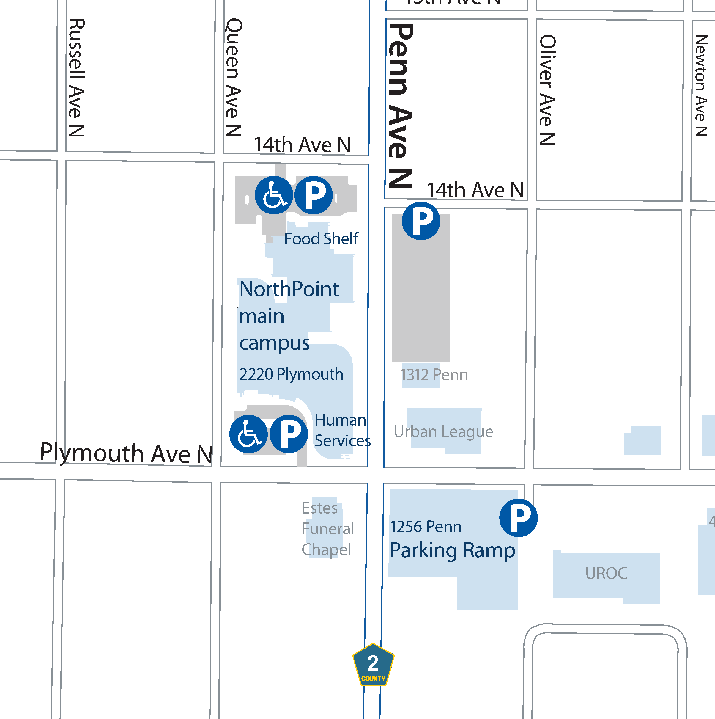 NorthPoint's main campus address is now 2220 Plymouth Ave N, Minneapolis, MN 55411. We are in the same familiar spot in the heart of North Minneapolis at the corner of Penn and Plymouth. Guests may enter from Plymouth Ave N (south entrance) or 14th Ave N (north entrance).