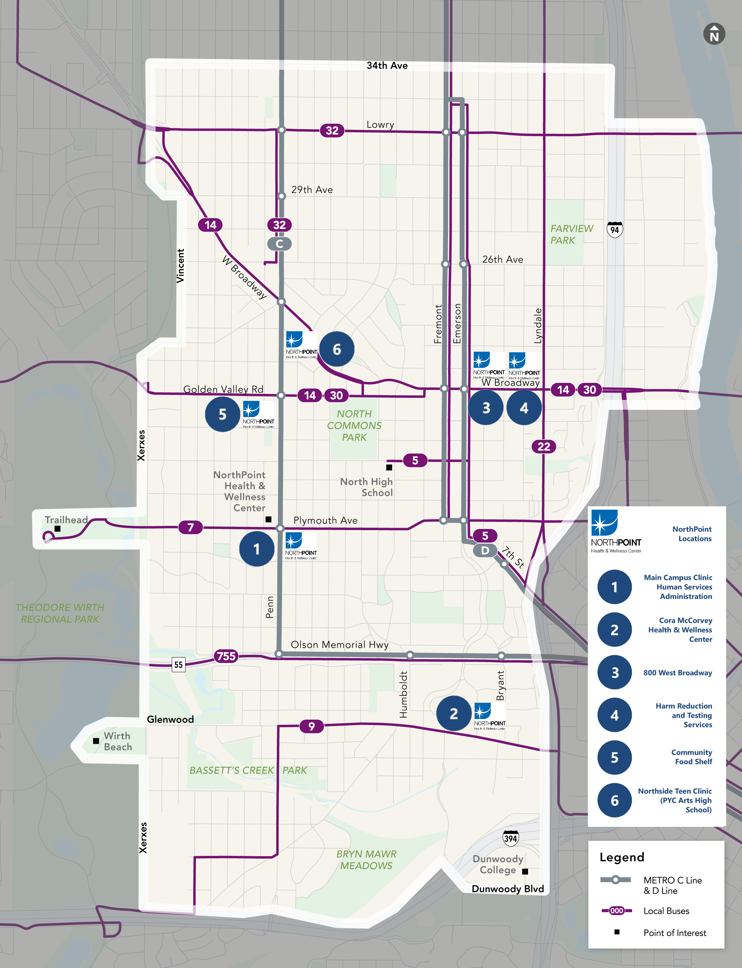 All of NorthPoint's locations are located within the Metro Transit micro service area. See the map below: